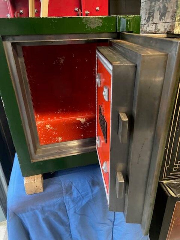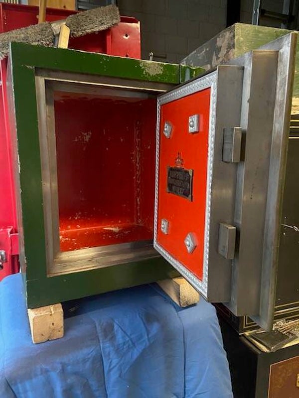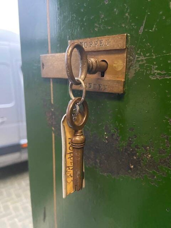 Prachtige originele en zeldzame antieke kleine NOPPENS kluis uit Arnhem. Compleet met de originele set pompsleutels! Dit betreft een wedstrijd kluis, welke vroeger gehouden werden onder de kluizen fabrikanten!